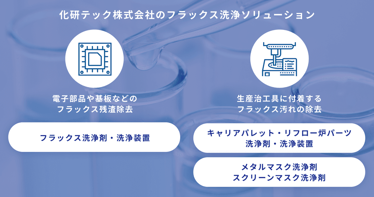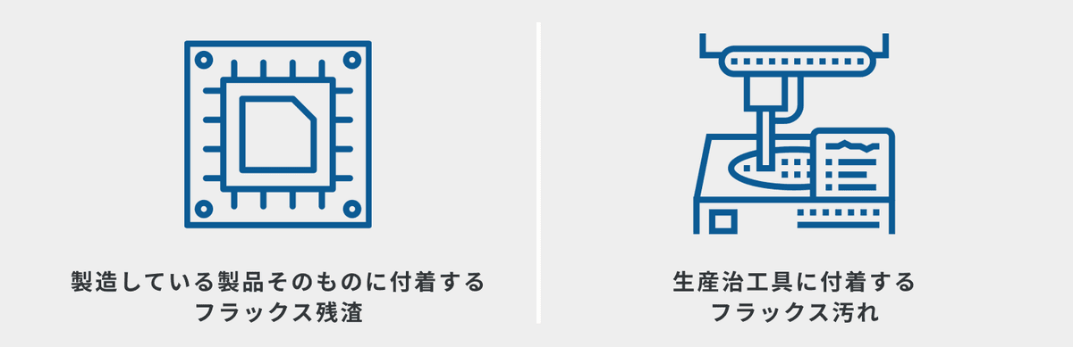 電子部品や基板など、製造している製品そのものに付着するフラックス残渣