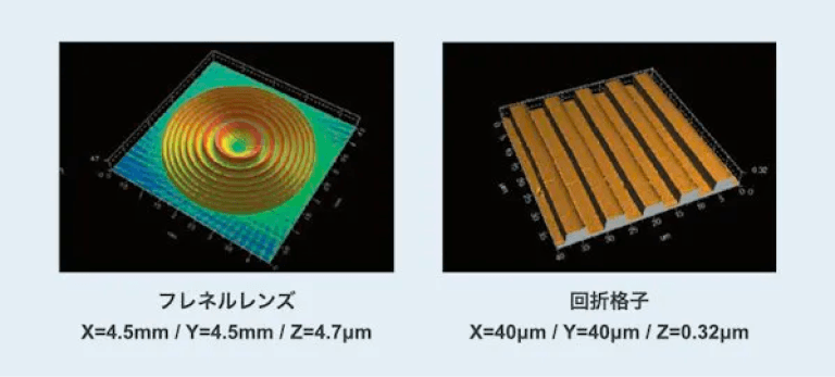 広範囲 / 高精度測定 (測定範囲:XYZ=60x60x10mm,分解能:XY=0.1μm,Z=0.01μm) |