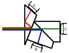3板式 | 3つのラインセンサーと3つのプリズムを搭載することで、ラインディレイ機能による調整を不要にしています。 プリズムの内蔵により、他のカラーカメラに比べてサイズが大きなることから、高額です。 ![]() |
