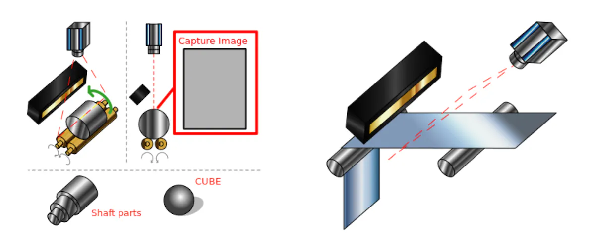 例えば、食品や飲料の生産ラインでの品質検査や、電子部品の製造過程における欠陥検出など、連続して動く対象物を正確に検査することが求められる環境で活用されます。