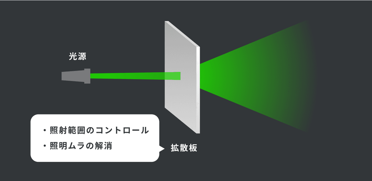 拡散板とは、照明ムラの解消や、光の照射範囲をコントロールするための光学製品です。